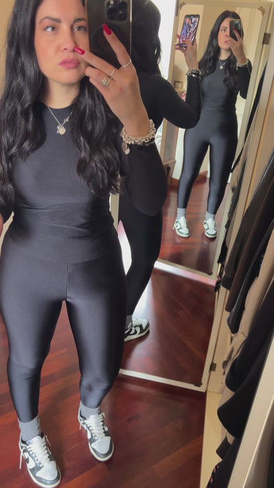 Leggings modellanti a vita alta in lycra ecosostenibile, progettati per valorizzare la silhouette e accompagnarti in ogni momento della giornata.